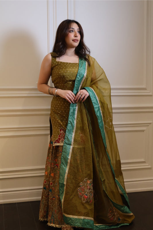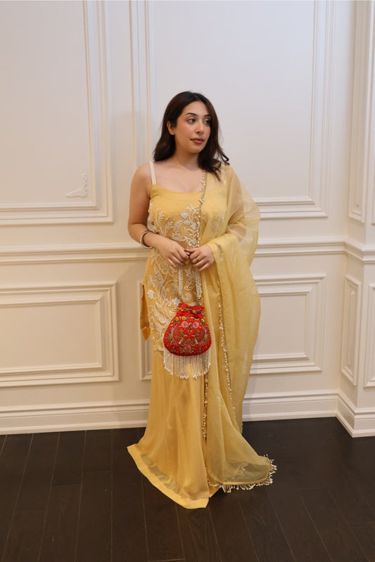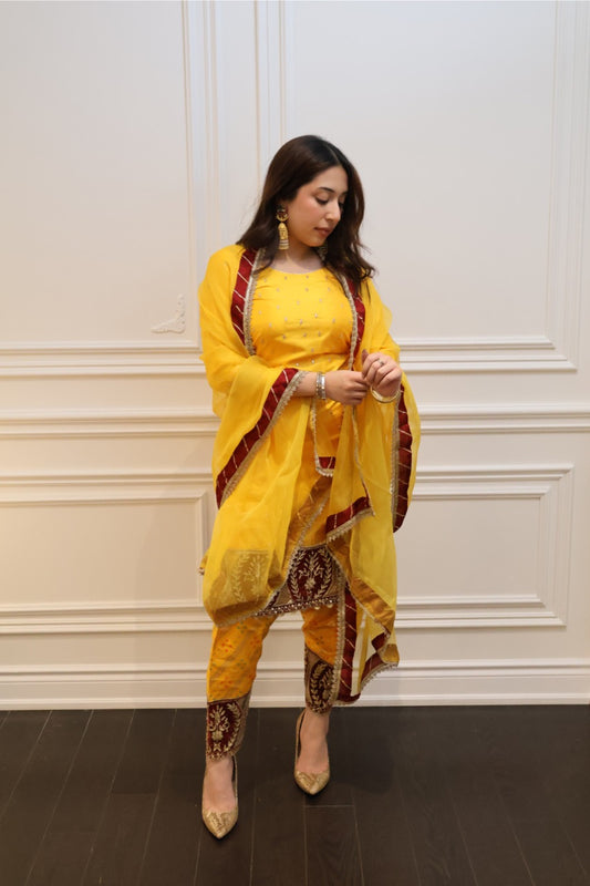 Includes: Kurta, Farshi Salwar, and Dupatta